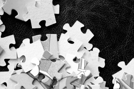Children's puzzles on a dark background close up. Black and white