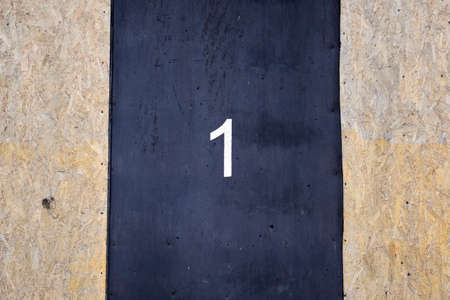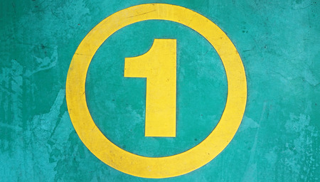 Number 1 painted with white paint on a black rubber surface