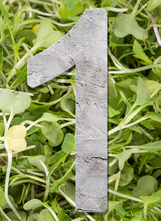 Number 1 with concrete texture, on nature background