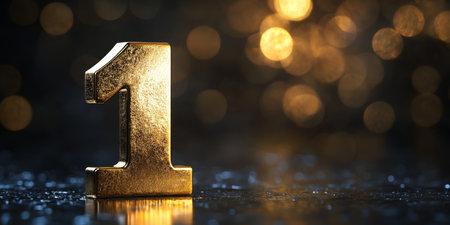 A beautifully crafted 3D golden number one stands out against a soft, blurred sparkling background, creating a mesmerizing focal point that draws in viewers with its charm and allure