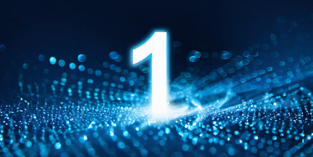 Glowing Digital Number One in Futuristic Style with Abstract Technology Background, 3D Rendering