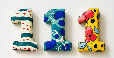 Decorative balloons shaped like the number one, showcasing bright colors and unique patterns, arranged creatively for festive celebrations and joyful events, AI generated