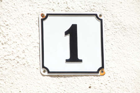 House number with number one, on a wall.
