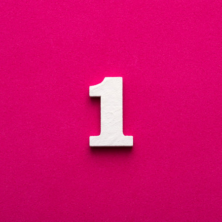 Number one - white number in wood on rhodamine red background