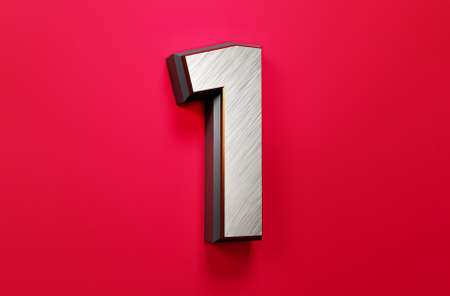 Red metal number one 1 on a red background. 3d render illustration.