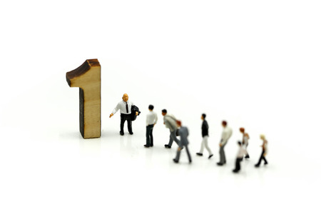 Miniature people : Businessman and team with wooden number of 1,2,3 , to be the first,business competition concept.