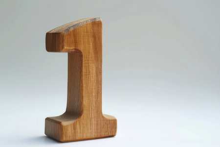 Cute wooden number 1 or one as wooden shape, white background, 3D illusion, storybook style.