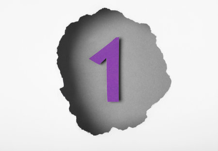 Top view of number 1 through hole in white paper. Victory concept
