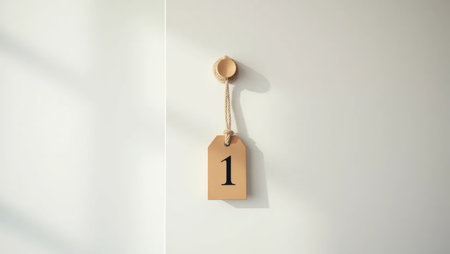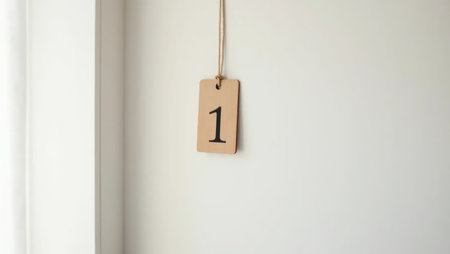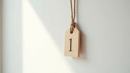 A tiny wooden number tag hangs on a rustic rope against a white background. Simple, elegant, and perfect for modern education or lifestyle themes.