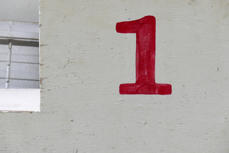 number one painted in red on white wooden board