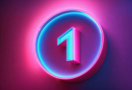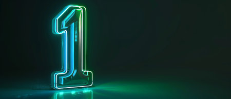 CG rendering, number one, glowing green and blue neon lights