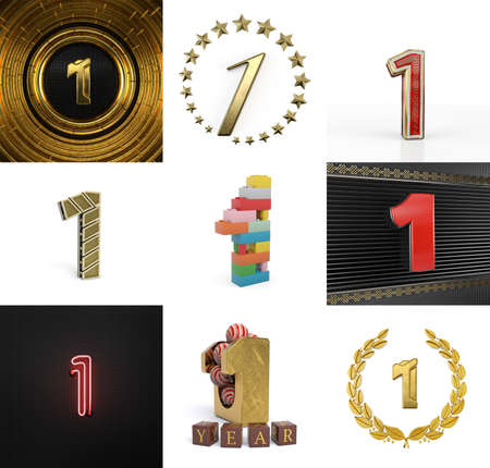 Set of one year birthday. Number 1 graphic design element. Anniversary number template elements for your birthday party. 3D illustration