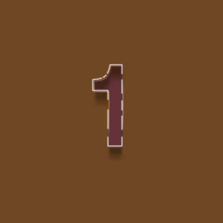 Number 1 from a typeset with shadow and editable stroke, isolated on brown background.