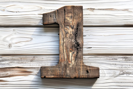 Number 1 shape crafted from dark oiled wood on white background for design projects