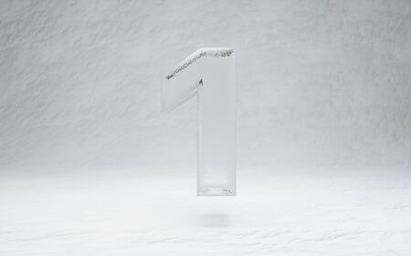Ice number 1. 3D rendered alphabet on white snow background. Best for winter sports banners, cocktail bars, ice exhibition advertising.