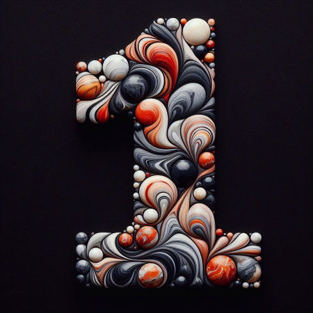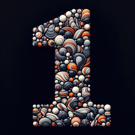 digit 1 shape made of marble pebbles. AI generated illustration