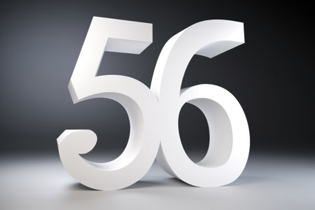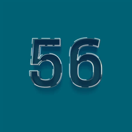 56 number with shadow effect on blue background, 3d realistic style