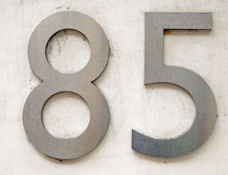Close up shot of house number eighty five