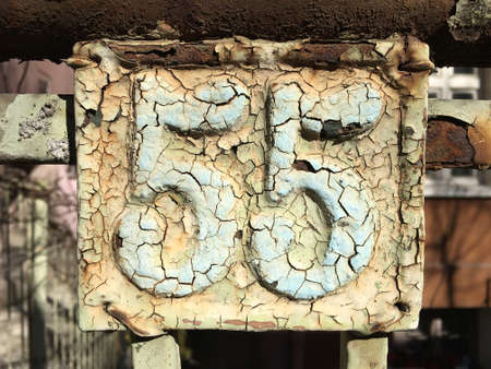 Vintage grunge square metal rusty plate of number of street address