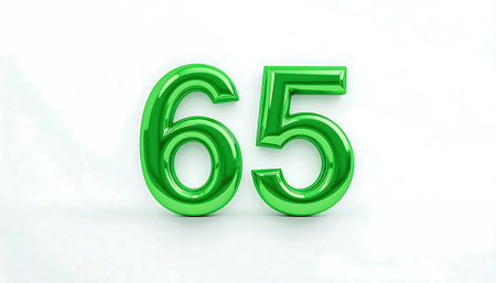 Green 3d number 65 on white background, green number 65 3d rendering. sign for marketing, sales, discounts, promotions, financial, Anniversary, business, banner. Special offer discount. 65 number