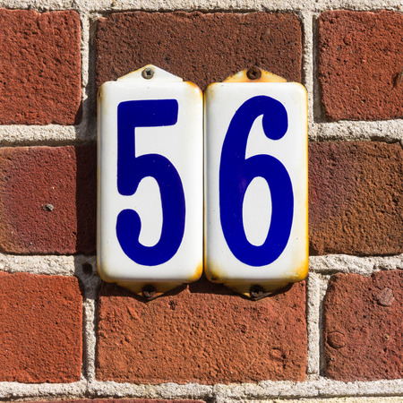 Enameled house number fifty six