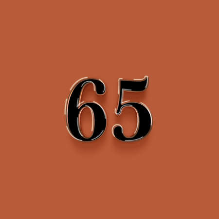 Metal number 65 with shadow on a colored background. 3d illustration