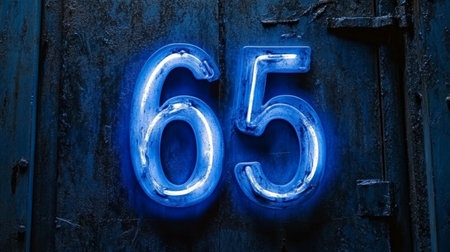 Glowing Blue Digital 3D Number 65 on a Dark Futuristic Abstract Technology Background