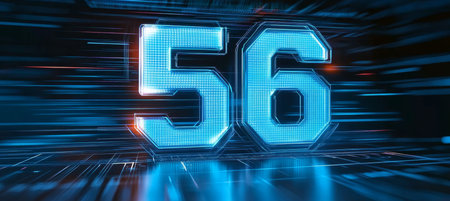 Futuristic Glowing Number 56 Integrated Circuit Board Technology Background, Digital Data Concept