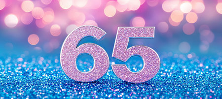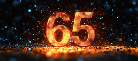 Shining Golden Number 65 on a Sparkling Celebration Background for Anniversary or Birthday