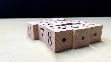 wooden block with numbers on blue background