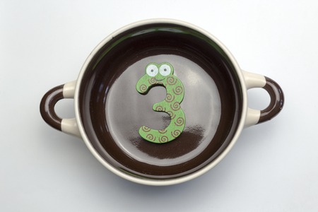 Border of colorful toy magnetic numbers with copy-space on wooden background
