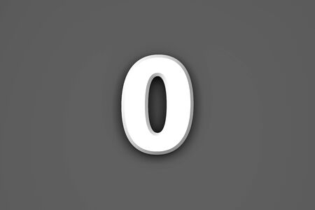 White paper style plain font - number 0 isolated on grey background, 3D illustration of symbols