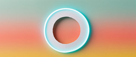 A captivating circular light ring features a harmonious blend of vibrant colors against a soft gradient background, creating an energetic and modern ambiance.