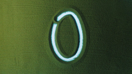 A stunning wreath crafted from vibrant green leaves forms the shape of the number zero against a sleek dark background. This artistic representation of nature brings a refreshing touch, symbolizing new beginnings and the beauty of simplicity.