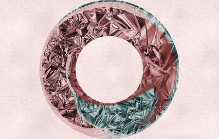 A circle filled with colored crushed aluminum foil on a textured pink background. Luxury digital paper.