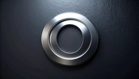 A gray metal logo with a spiral engraving is displayed on a light background, emphasizing a modern and sleek aesthetic.
