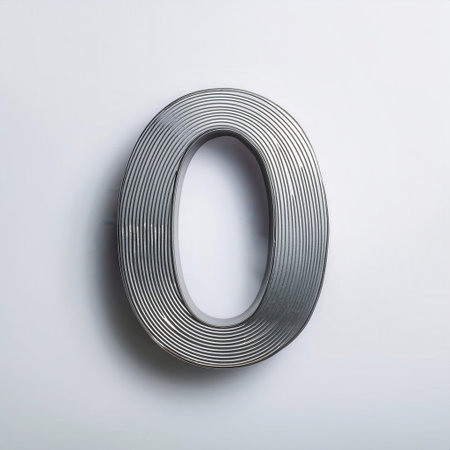 Glossy, light gray three-dimensional rendering of the number zero, isolated against a plain white background. The surface of the number reflects light, showcasing a smooth and reflective texture.