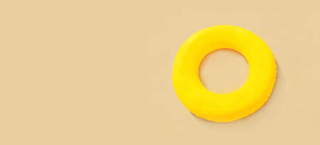 Summer vacation concept - inflatable ring on the beach sand background, blank copy space for advertising text