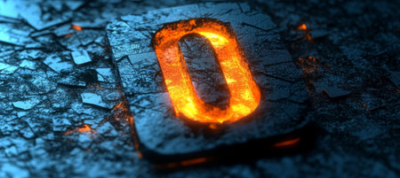 Glowing Digital 3D Number 0 In Futuristic Stone Surfaced By Cracks Structure With Magma