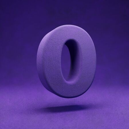 Violet velvet number 0. Indigo color font character.. 3D rendering.