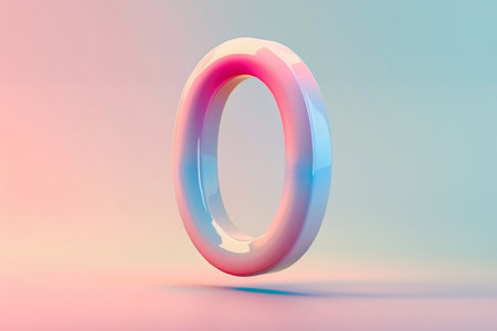 Render in 3D, number null, digital zero symbol, neon light with pink and blue gradients