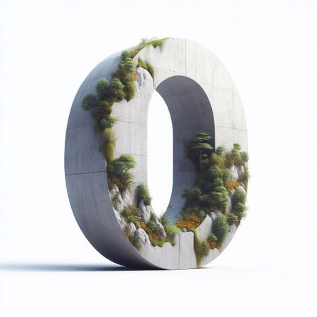 O letter shape 3D Lettering That Blends Concrete With Nature. AI generated illustration