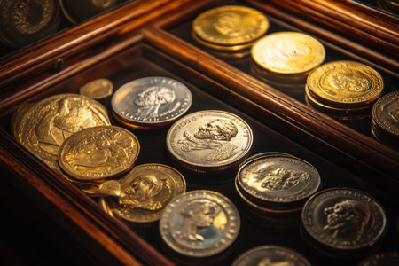 A beautifully engraved coin reveals a regal figure, showcasing intricate designs and textures. Soft light illuminates the metallic surface, highlighting artistry and historical significance.