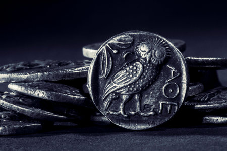 Ancient Greek Coin Showing Goddess Athena and Owl, Silver Tetradrachm 5th Century BC