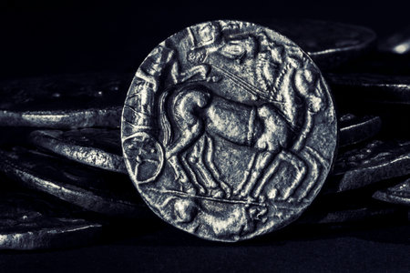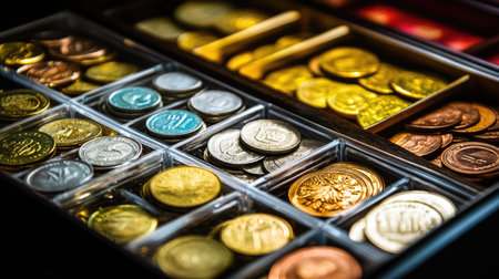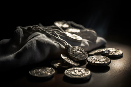 Immerse yourself in the world of numismatic beauty with this stunning image that showcases the intricate details and magnificence of historic coins from various civilizations throughout history. Combining elements of classical art and modern design, this captivating composition depicts coins in an artistic and visually striking manner. Vibrant colors, exquisite textures, and captivating lighting enhance the allure of these priceless treasures, inspiring awe and fascination. Delve into the historical significance and stories behind each coin, and let your imagination wander. This contemporary digital illustration style blends realism with a touch of surrealism, allowing the unique characteristics of each coin to shine. With its clean and polished look, this image is perfect for commercial use on microstock sites.
