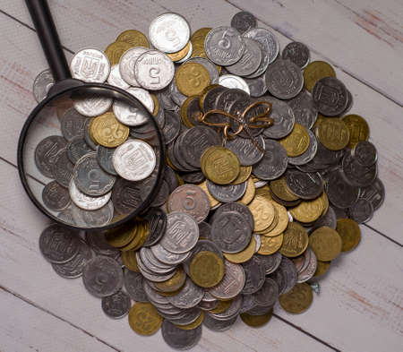 Magnifying Glass and Old Coins.