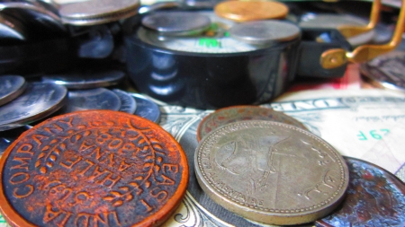 Lots of different coins on the table