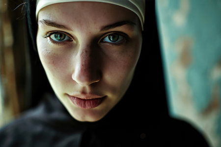 beautiful woman nun, closeup portrait