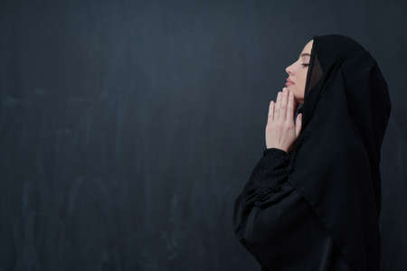 Portrait of young Muslim woman making dua