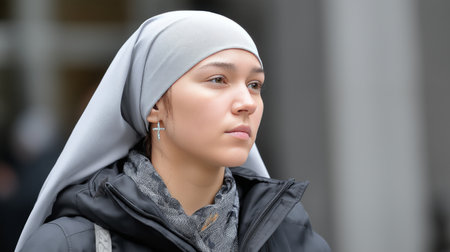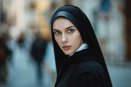 Serene Nun in Habit Portrait on Urban Street